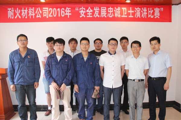 为深入贯彻2016年“强化安全发展观念,提升全民安全素质”的安全月主题,6月22日上午10点,耐火材料公司在品质楼二楼会议室组织开展了“安全发展忠诚卫士”演讲比赛。