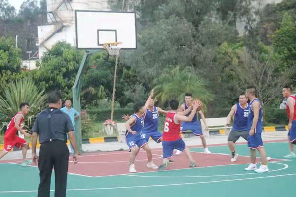 同时为充分展示公司广大职工昂扬向上的精神面貌,弘扬海螺精神开展篮球友谊赛。随着一声哨响,比赛正式开始。赛场上,队员们严密防守,巧妙配合,禁区强打、快攻上篮、三分远投、飞身封盖,精彩的场面不时将比赛气氛推向高潮。当有意外跌倒、碰撞发生时,队员之间拍拍肩膀相互安慰一下接着再来,体现出他们上下一心合作的竞赛风貌。每位运动员都把比赛规则贯彻到底,完美的诠释了“友谊第一,比赛第二”的竞技精神;场边的球队教练和领队纵观全局,运筹帷幄,及时调整策略和阵型,以己之长攻彼之短。