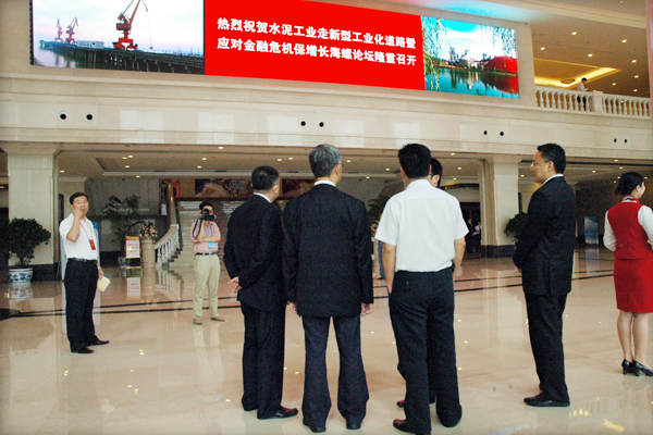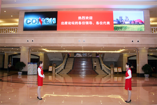 记者在国际会议中心大厅看到,电子显示屏上打出了醒目的标语:“热烈庆祝水泥工业走新型工业化道路暨应对金融危机保增长海螺论坛隆重召开!”“热烈欢迎出席论坛的各位领导、各位代表!”