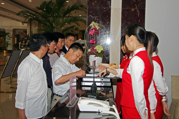 下午,与会代表陆续到达,海螺集团暨水泥股份公司领导在大厅迎接,热情的礼仪小姐引导客人办理相关手续。