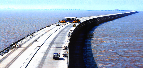 Hangzhou Bay Cross Sea Bridge constructed with conch cement.