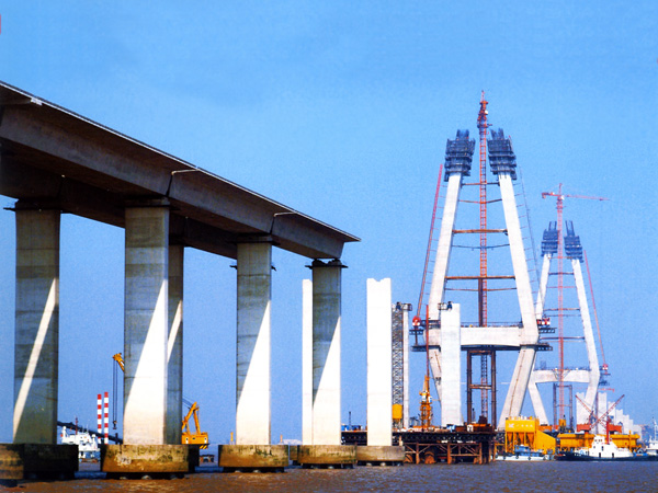 The Hangzhou Bay Cross Sea Bridge is the longest cross sea bridge in the world at present.The bridge has more than 660 bridge piers,36 kilometers long.The principal part of the project used cement, invited for public bidding in July 2003.The public bidding is divided in two section bid, ie.SN1 (north shore section bid, sea section bid), SN2 (south shore section bid).Passed through intensely competition,conch cement company won the Hangzhou Bay Bridge SN1 bidding section , which benefited from super good quality, scale of conch cement company. The bid cement quantity is over 400,000 tons, accounted for the bridge cement quantity 2/3.This also was one of the biggest key project which conch cement performed. The bridge cement selected,which surpassed the China National Standard ,the low alkali, the low hydration heat, special portland cement, compounded the unique sea engineering concrete, thus satisfied the bridge engineering construction quality requirement.
