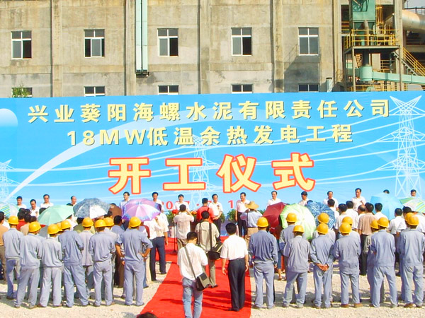 At 9:08 am July 16,there were full of happiness at Xingye Conch togather with waving color flags, loud percussion instruments.The ribbon-cutting at the opening ceremony of the 18MW WHG project was thrivingly held by Xingye Conch .About 150 people from government of Yulin city,Xingye county of Guangxi Autonomous Region and Conch, attended the ribbon-cutting celebration ceremony.