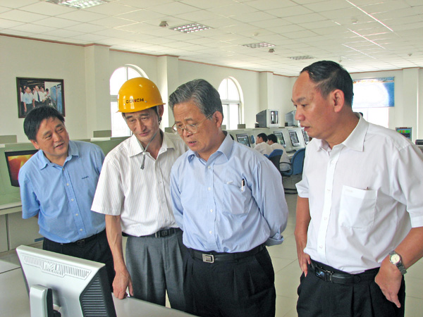 Huang Yuezhong (left three) understood 10000t/d productions lines operation situation in CCR