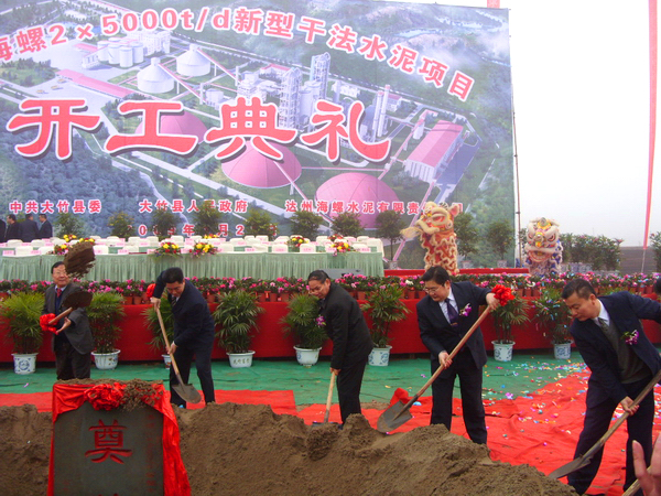 On January 21,Dazhou Conch grandly held foundation stone-laying and starting construction ceremony for 2×5000t/d new dry process cement project. It was about 500 people,including leaders from Dazhou city and county related departments, each construction company and Dazhou Conch's cadre and staff,attended the ceremony.