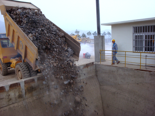 At 17:18 p.m. of January 16th, 2010, the first car of limestone arrived at crushing station from first mining area 6km away , and smoothly entered into crusher entrance. Having been crushed, limestone went into the pre-homogenizing yard along the belt corridor, marking Guangyuan Conch project construction achieved another staged success.