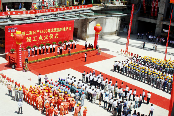 On June 24, 2011, Pingliang Conch 2# 4500t/d cement clinker production line succeeded to be ignited. Thus, the two biggest 4500t/d new dry cement clinker production lines project in Gansu Province, invested by Conch Group, were both built and operated.