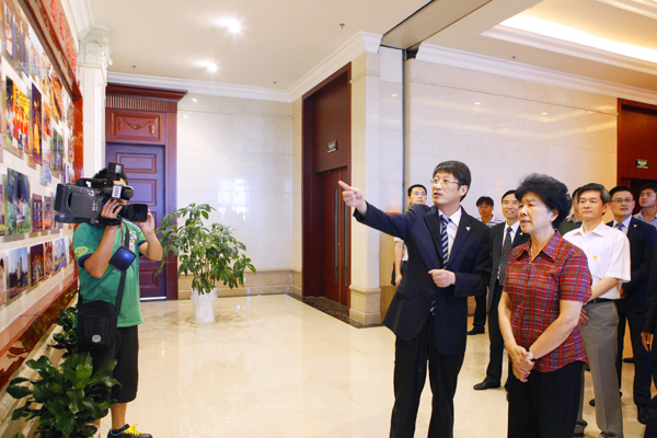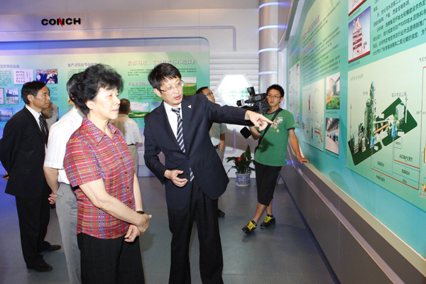 July 25,2012, Ms.Wang Zhizhen, Vice Chairman of National Committee of CPPCC and Vice President of Jiu San Society led a guild tour to Conch Group for investigation and survey on energy saving, emission reduction and transformation of technological achievement. After visiting and listening to the reports, Ms. Wang hoped Conch to continuously focus on and accelerate technology innovation technological achievement transformation, such as the technology on garbage disposal, so as to make more contribution on environment protection, energy conservation and sustainable development.