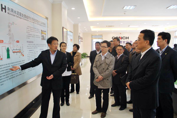 On Dec. 3rd, 2013, Vice Chairman of Anhui provincial CPPCC, Chairman of Anhui General Union Tong Huaiwei led a delegation to Tongling Conch to visit refuse disposal program. After thorough understanding, he said that the refuse disposal program is the typical case of developing circular economy. The program shows the advanced technology of Conch and shall be promoted so that more cities and people will benefit from it.(translator:Huxiaohong)