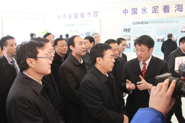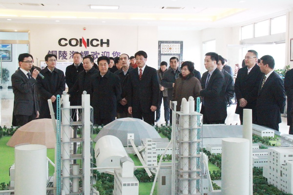 The standing committee of NPC, the deputy director of environmental and resources protection committee, Mr. Wang Qingxi and Mr. Yuan Si, led the NPC research team to visit Tongling conch CKK project on Feb.19th, 2014.(translator:Wangshan)