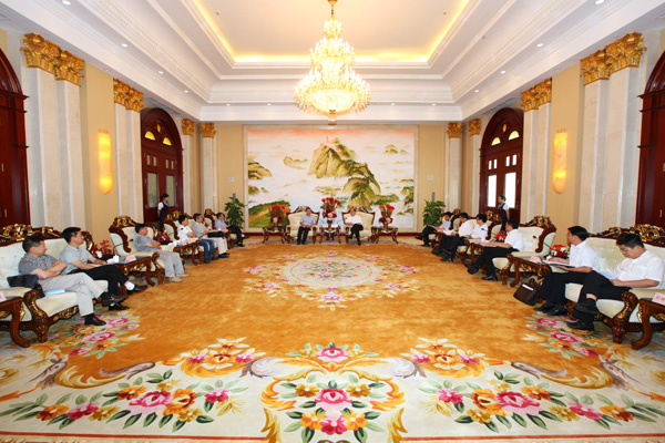 Mr. Zheng Li, Deputy Director of Hunan Provincial Department of Environmental Protection, led a delegation to visit Conch group on Aug.7th, 2014. After the delegation mainly investigated the solid waste incineration via cement kiln (CKK) system in Conch Tongling Plant, the delegation was duly impressed by the advanced equipment and information control system,excellent operation management,the coffee shop in the waste treatment building and the beautiful environment in the plant. The delegation said they would continue to strengthen the contacts with Conch Group, and promote the advanced energy saving and environmental protection technology of Conch Group in Hunan province.(translator:Wangshan)