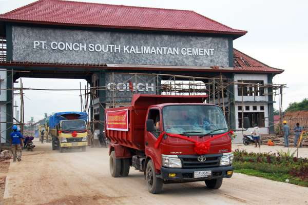 On January 12th, 2015, cement with “Conch” brand loaded in trucks and driven out of the gate of PT. Conch South Kalimantan Cement, which shows that PT. Conch launch the first batch cement on market successfully.(translator:Shenghuijuan)