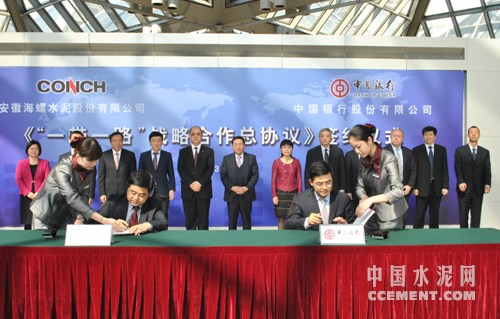 On 11th March 2015, Conch Cement signed One Belt and One Road (OBAOR) strategic cooperation agreement with Bank of China in Beijing. The signing of this agreement will provide more financial support and service for the “go abroad” development of Conch and realize win-win cooperation at higher level and broader range.