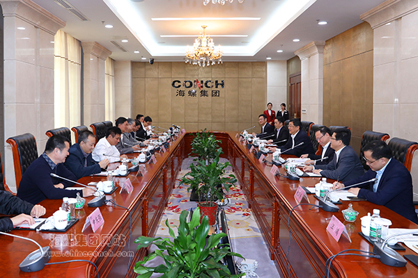 On 14th November 2016, Mr. Gao Dengbang, Party Secretary and Chairman of Conch Group, met with delegation led by Mr. Chen Ping, Municipal Party Secretary of Yangchun City. Both parties reviewed the previous cooperation projects, and expressed wishes to have further communication with each other and search for expanding cooperation areas.