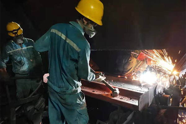 维修、烧成作业人员提前将工器具、备件准备到位,正确规范办理停送电手续工作,维修工段长邹强现场指挥作业。现场岗位人员对旧裙板拆除后,开展了齿盘打磨,齿盘矫正,链条重新张紧等工作。维修、烧成人员克服空间狭小、光线较差、通风不良等不利因素高质量完成了卸煤坑裙板更换工作。