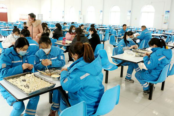 员工们亲自动手包饺子