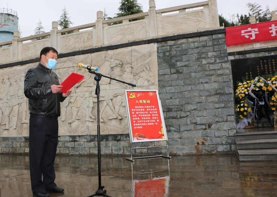 在烈士纪念碑前,党员干部举起右手,面对鲜艳的党旗重温入党誓词,回顾入党宣誓时的庄严承诺和坚定决心。公司党委委员、纪委书记谷永红在纪念碑前,给全体人员上了一堂简短而深刻的党课,重温革命历史,接受党性教育洗礼。