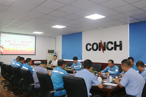 为贯彻落实习近平总书记新时代强军思想,纪念中国人民解放军建军94周年,进一步巩固和推进“双拥”工作,切实把公司关怀送到广大退伍军人心坎上,鼓舞广大干部员工继续发扬人民军队作风优良、纪律严明、吃苦耐劳的光荣传统,牢固树立“四个意识”、增强“四个自信”,做到“两个维护”,为公司发展贡献力量。2021年7月29日, 千阳海螺在办公楼三楼会议室组织召开了庆祝“八一”建军节座谈会,总经理助理齐一山出席会议,与公司11名退伍军人代表亲切座谈,办公室主任助理董保平主持。