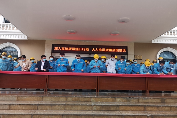 为贯彻公司中期会议精神,依托全国质量月活动的契机,落实“严肃质量纪律、规范制度执行,强化质量监管、防范质量风险,提升产品内涵、创建一流品牌”的质量管理思路,实现“熟料质量求高、水泥质量求稳、服务质量求优”的目标,9月1日上午公司在中控楼举行了以“深入实施质量提升行动 大力推进质量强国建设”为主题的质量月活动启动签字仪式。