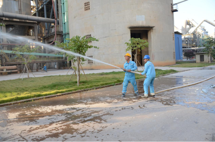 17:00,消防演练指挥组在窑中广场组织大家开展了灭火演练。演练开始前,由保卫主管陈宗悦同志为大家讲解干粉灭火器及消防水带使用方法和注意事项。“哔!”哨声一响,保障人员点燃铁通内火源,各演练人员手持干粉灭火器,迅速跑到火源上风处,通过“摇、拉、瞄准”等一系列操作,成功将火源扑灭。随后,在开展的消防水带灭火比赛中,以水泥分厂为主的小组,经过密切配合,以38秒将火源熄灭的成绩成功获得比赛第一名。