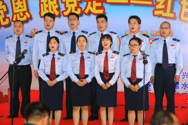 最后,兴业税务局合唱队通过一首《唱支山歌给党听》表达了党员们拥抱新时代、奋进新时代,以优异成绩迎接建党100周年的热情。