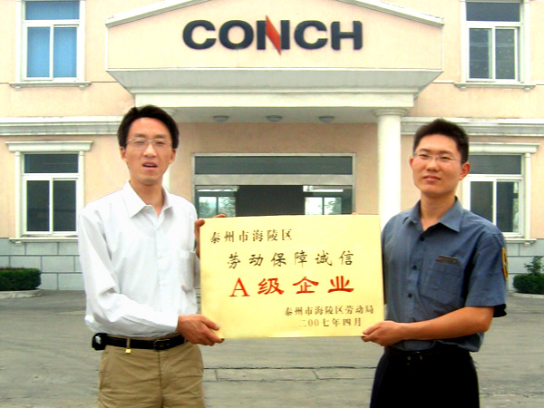 5月31日,泰州海螺水泥有限公司被泰州市海陵区劳动局授予“2006年度泰州市海陵区劳动保障诚信A级企业”。