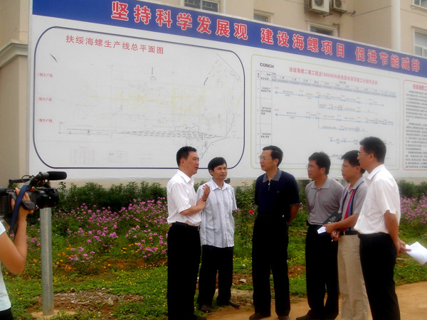 周副厅长详细了解了公司生产经营、二期项目建设情况,以及节能减排措施。周副厅长看到“扶绥海螺节能减排‘十一五’规划”宣传牌后,高度赞扬扶绥海螺积极推进节能减排并走在了全区前面,展示了一个负责任的大企业风范。
