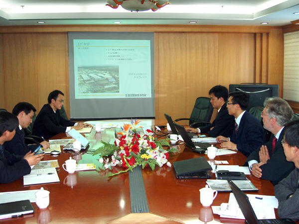为深入了解国外工程机械新技术,结合公司矿山发展需要,2007年3月27日,国际业务部邀请利勃海尔机械服务(上海)有限公司在海螺大厦进行技术交流。公司供应部和矿山专业委员会参加了此次会议。双方就利勃海尔挖掘机和轮式装载机及其应用进行了广泛而深入的交流。