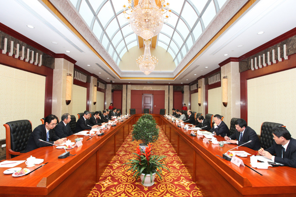 郭文叁董事长在国际会议中心518会议室会见了林敏和社长一行。