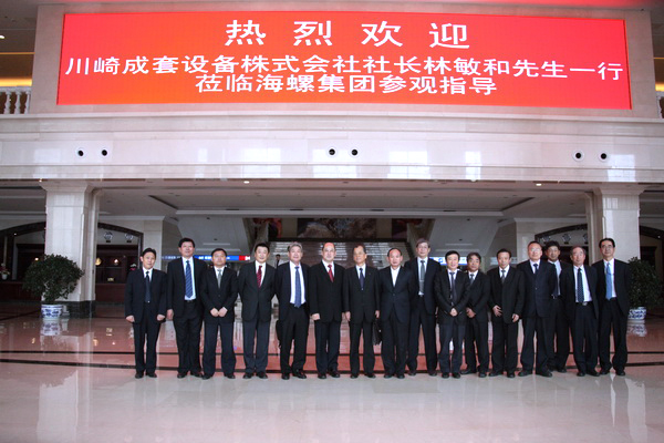 2009年11月2日,日本川崎成套设备株式会社林敏和社长一行5人来海螺集团访问交流。集团董事长、总经理郭文叁率集团公司、海螺水泥股份公司领导及相关部门负责人热情接待了林敏和社长一行,并就双方合作事业的发展等进行了深入交流与研讨。