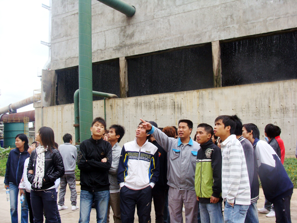 扶绥海螺公司相关人员分组带领师生参观了公司生产线、化验室、中央控制室、海螺展厅等。为了让师生们深入了解现代水泥生产工艺和技术,熟悉现代企业的节能环保举措,公司首先带领师生参观了公司新型干法熟料生产线,对各生产环节进行了详细介绍,并重点介绍了静电除尘装置、余热发电等节能环保设备的应用,以及电石渣、矿渣、煤渣、硫酸渣等工业废弃物的使用情况。初次接触现代水泥熟料生产线的同学们,对现场的一切感到非常好奇,纷纷询问现场各种设备的工作原理、废弃物使用等方面问题,公司陪同的技术人员一一作了解答,直至学生们都理解和满意为止。