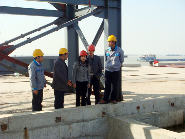 在杨湾海螺二期工程紧张调试,即将进行试生产前期,11月3日,泰州市环境监察局受省环保厅和省环境监察局委托,市环境监察局陈玉琴局长一行对杨湾海螺二期项目试生产前环保设施以及“以新带老”措施落实情况进行现场监察。杨湾海螺公司总经理助理吴志勇接待了陈局长一行。