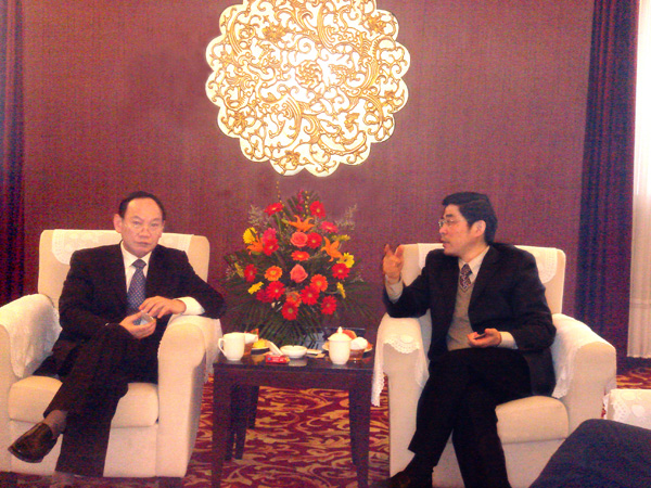 杨培林与海门市副市长开发区管委会主任沈峻峰进行项目商谈