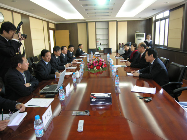 3月8日上午,海螺集团公司董事长、总经理郭文叁,副总经理郭景彬等一行五人访问了中国中材料集团公司总部。中材料集团公司总经理谭仲明、党委书记于世良、副总经理刘志江等和郭总一行进行了亲切友好的会谈。