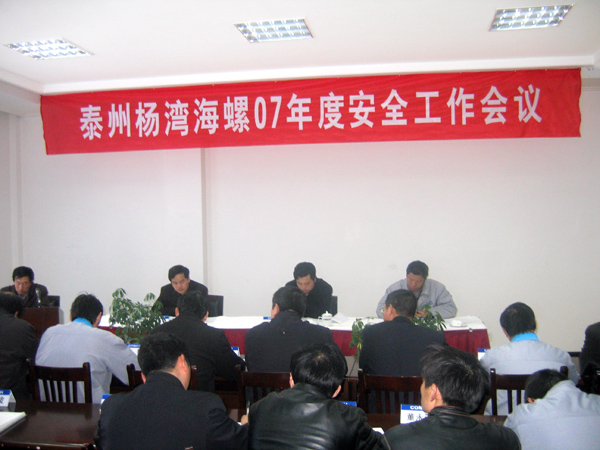 3月9日下午13:30泰州杨湾海螺公司召开了07年度安全工作会议,区域内泰州海螺、南通海螺及八菱海螺参加了会议。公司各部门对06年安全管理工作进行了总结并对07年安全管理思路及保证措施进行了汇报;八名班组长就06年班组安全管理在会上进行了交流,并对四个安全模范班组进行了表彰。同时公司领导就06年安全管理中存在的问题进行了梳理并对07年安全管理工作提了新的目标。
