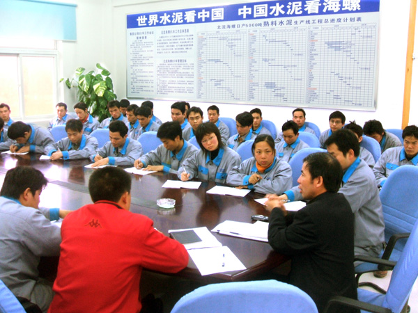 2007年3月10日下午,北流海螺公司召开了全体电气、机械人员座谈动员会。会上,公司总经理查立林同志针对工程建设各节点计划和设备监装工作作了动员,要求与会人员围绕5月份点火投料奋力拼搏,抢抓工程进度和监装质量,确保一期生产线按期点火投产。
