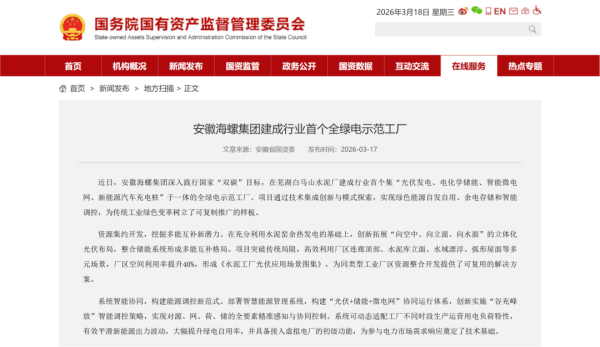 近日,海螺集团深入践行国家“双碳”目标,在芜湖白马山水泥厂建成行业首个集“光伏发电、电化学储能、智能微电网、新能源汽车充电桩”于一体的全绿电示范工厂。