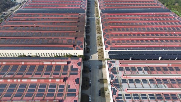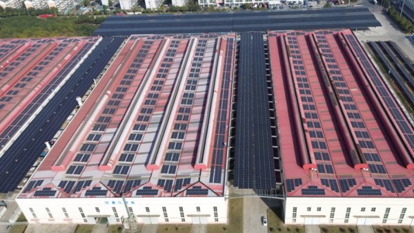 在厂区连廊的顶部铺设光伏,不仅能发电,还顺带起到了遮阳的作用