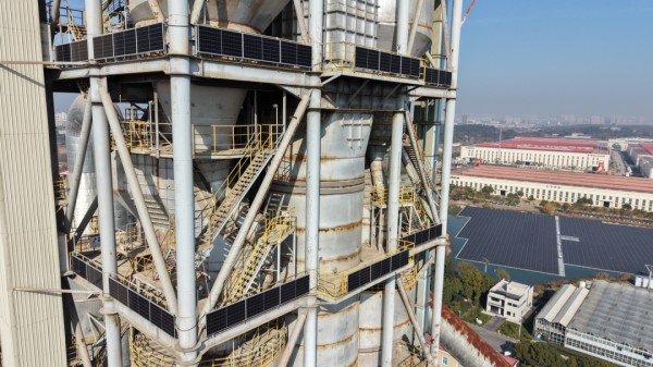 在几十米高的水泥库垂直墙壁上安装组件,实现了土地资源的“零占用” 。