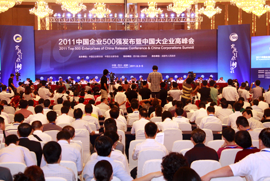 3日-4日,由中国企业联合会、中国企业家协会共同主办2011中国企业500强发布暨中国大企业高峰会在四川成都召开。中国企联会长王忠禹,国务院国资委副主任黄耀和,四川省委常委、成都市委书记李春城,四川省副省长李成云,全国政协教科文卫体委员会副主任王全书,四川省政协副主席方小方,中国企联常务副会长兼理事长李德成、执行副会长陈兰通、陈光复、王基铭、尹援平,以及来自中国500强、世界500强企业的高层领导和著名专家学者、新闻媒体代表1000多人参加了会议。受郭文叁董事长的委托,任勇总经理代表海螺集团出席了本次发布会。