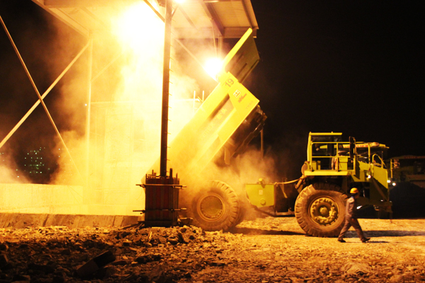 9月20日晚11:26分,芜湖海螺三期破碎工地灯火通明,人声浮动,鞭炮齐鸣,一辆满载石灰石的TR50矿车徐徐驶向三期1#破碎下料口,将来自三期矿山开采下来的第一车矿石倒入卸料基坑,矿石又经过PC-2022型破碎机破碎和三期石灰石皮带进入石灰石堆场顺利完成堆料,按期顺利实现了破碎系统和输送系统联动负荷试车,标志着芜湖海螺12000T/D生产线A线全面进入试生产阶段。