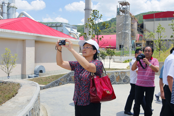 在蓝天白云的衬托下,公司干净整洁、绿草如茵的厂区给初次到公司调研的代表团成员留下了深刻印象。贵定海螺盘江公司总经理郑役文向考察团代表们介绍,海螺一贯重视科技创新、节能减排和环境保护,所以贵定海螺盘江公司从规划到建成始终是以生态环保型工厂为目标。看着如画般工厂风景,国资委江燕总会计师等领导拿出相机,仔细构图拍摄,并驻足留影。考察团一位企业代表说:员工在这么好的环境下工作,精神面貌非常好,企业真正做到了和谐发展。