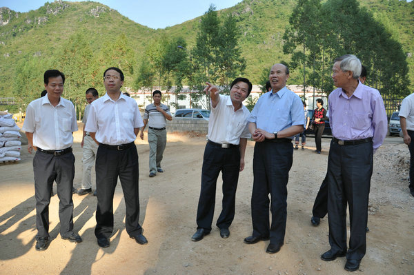 在公司领导的陪同下,陈书记一行来到公司二期熟料线建设场地进行实地考察,公司领导夏小平同志简要介绍了近年来公司经营情况及二线建设情况。他说:近年来,公司生产总值累计达30亿元,上缴利税逐年增加,同步带动了地方经济发展。且二期工程将进入试生产阶段,投产成功后,公司水泥、熟料产销规模将达到500万吨/年,上缴利税将翻一番,进一步推动地方经济发展。