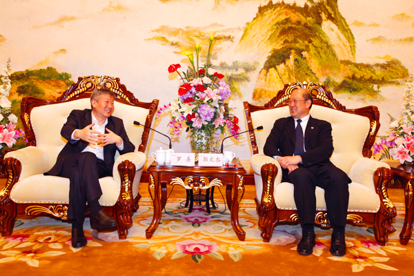 郭董事长对罗副行长一行来访交流表示欢迎,愉快地回顾了在海螺集团改革发展过程中与工行的长期合作与深厚友谊。他通报了今年以来集团的总体经营概况、主要产业板块情况和“十二五”规划设想及海外战略,并介绍了海螺在装备技术、物流体系、生产指挥、原料资源、经营管控、工程建设、激励机制及投融资发展等方面具有的不可比拟的领先优势。他表示,海螺集团正围绕总书记对海螺创建国际知名品牌的指示精神,响应贯彻政府号召,积极推进“走出去”战略,加强对外合作,也希望得到工行的大力支持,扩大合作与共赢。