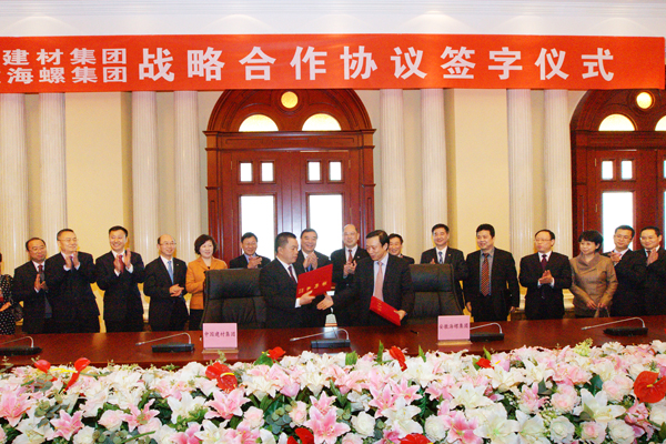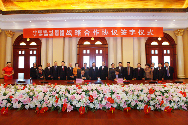 为深入贯彻落实党的“十八大”精神,促进经济增长方式的转变,深化安徽与中央企业的合作,搭建优势互补、资源共享的战略平台,实现强强联合、互利共赢,2012年12月4日,中国建材集团与安徽海螺集团在芜湖签署了“战略合作协议”。