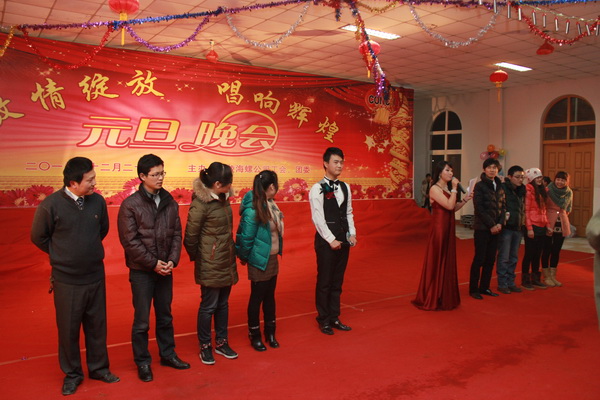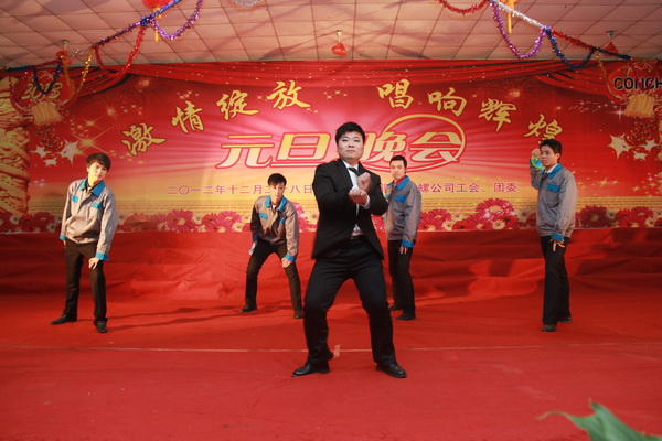 凯歌高奏辞旧岁,莺歌燕舞迎新年。2012年12月28日,铜陵海螺公司万吨线食堂张灯结彩,灯火辉煌,到处充满着欢声笑语、洋溢着欢乐祥和的节日气氛。铜陵海螺隆重举办“激情绽放、唱响辉煌”2013年元旦晚会,公司领导、中层管理人员及广大员工共400余人一同观看了本场晚会。