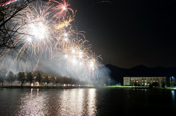 晚会结束,场外烟火不断升起,海螺的夜空被烟火染红了,宛如姹紫嫣红的百花园。四射的烟花时而像金菊怒放、牡丹盛开;时而像彩蝶翩跹、巨龙腾飞;时而像火树烂漫、虹彩狂舞。