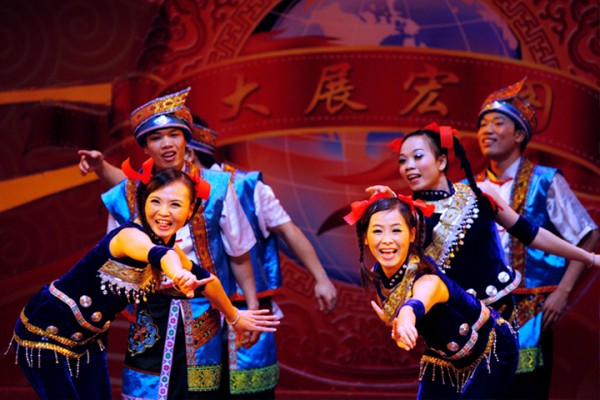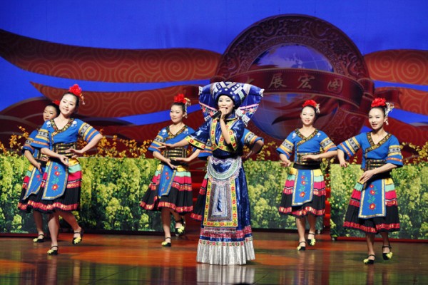 贵州区域的歌伴舞《金雪飞舞》,带来了一丝迷人的初春气息。动人的歌声、美丽的舞蹈,仿佛一片金黄的油菜花海就在眼前。