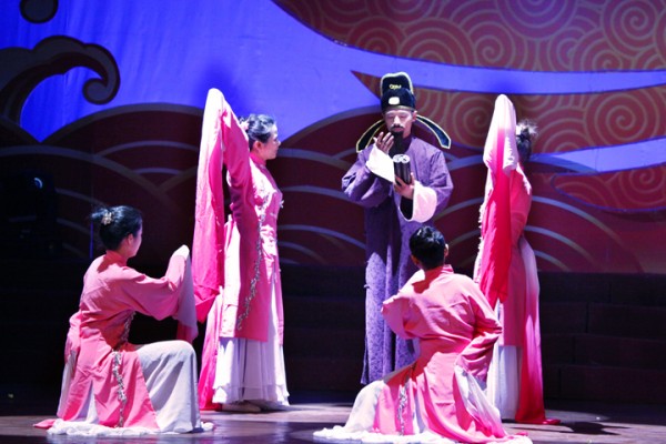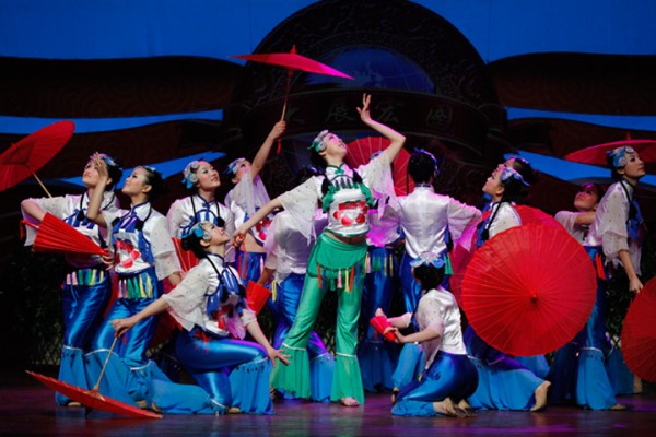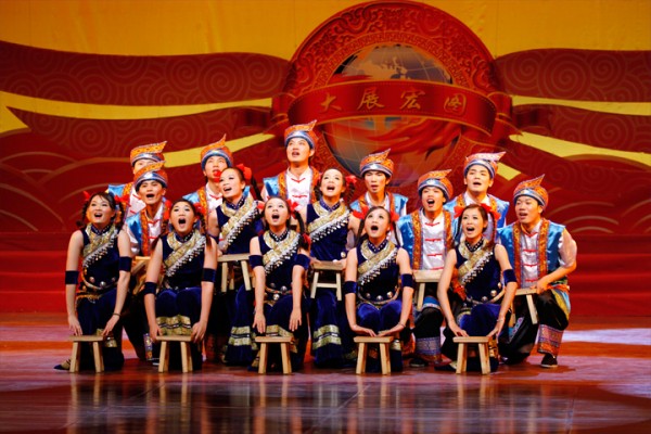 演员们怎么也搬着小板凳在舞台上看戏了?原来这是广西区域为我们带来的《乡村社戏》。精彩的社戏,俏皮的舞蹈,表现出壮族乡亲们观看社戏的喜悦心情。