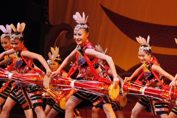 看,海螺瑶族女孩们正踏着欢快的节奏向我们走来!广东区域《瑶鼓颂》用瑶族传统的长鼓舞,表达海螺人丰收的喜悦。